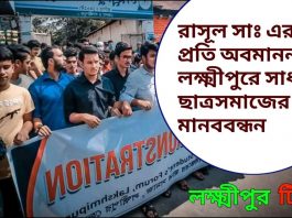 রাসূল সাঃ এর প্রতি অবমাননাঃ লক্ষ্মীপুরে সাধারণ ছাত্রসমাজের মানববন্ধন