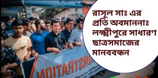 রাসূল সাঃ এর প্রতি অবমাননাঃ লক্ষ্মীপুরে সাধারণ ছাত্রসমাজের মানববন্ধন
